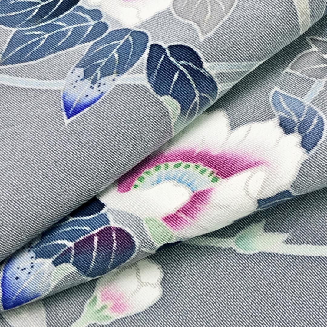 訪問着 本加賀友禅 和泉衛知 花模様 暈し 空鼠色 証紙付 縮緬 K-5450の検索結果