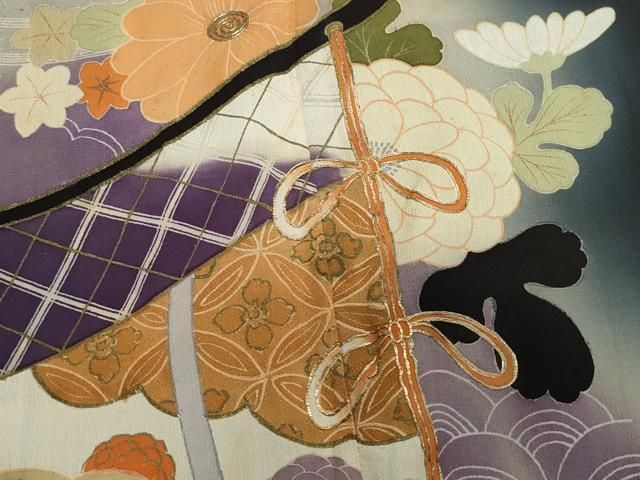 平和屋着物 アンティーク 大正ロマン 黒留袖 駒刺繍 几帳貝合わせ花文 暈し染め 金彩 正絹 CAAZ0946vfの検索結果