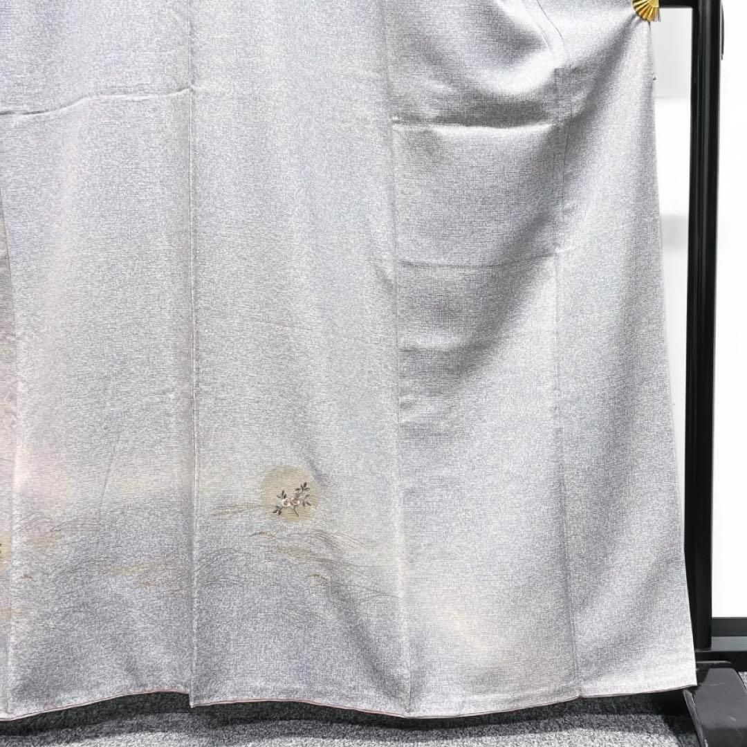 訪問着 身丈164.5cm 裄丈65cm M 袷 御所車 草花 刺繍 染め分け 灰緑 正絹 秀品