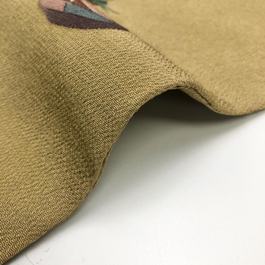 名古屋帯 野菜柄 茄子 豆 縮緬 国防色 長尺 O-5543 GLOBALQUALITYIMPORTS_COM