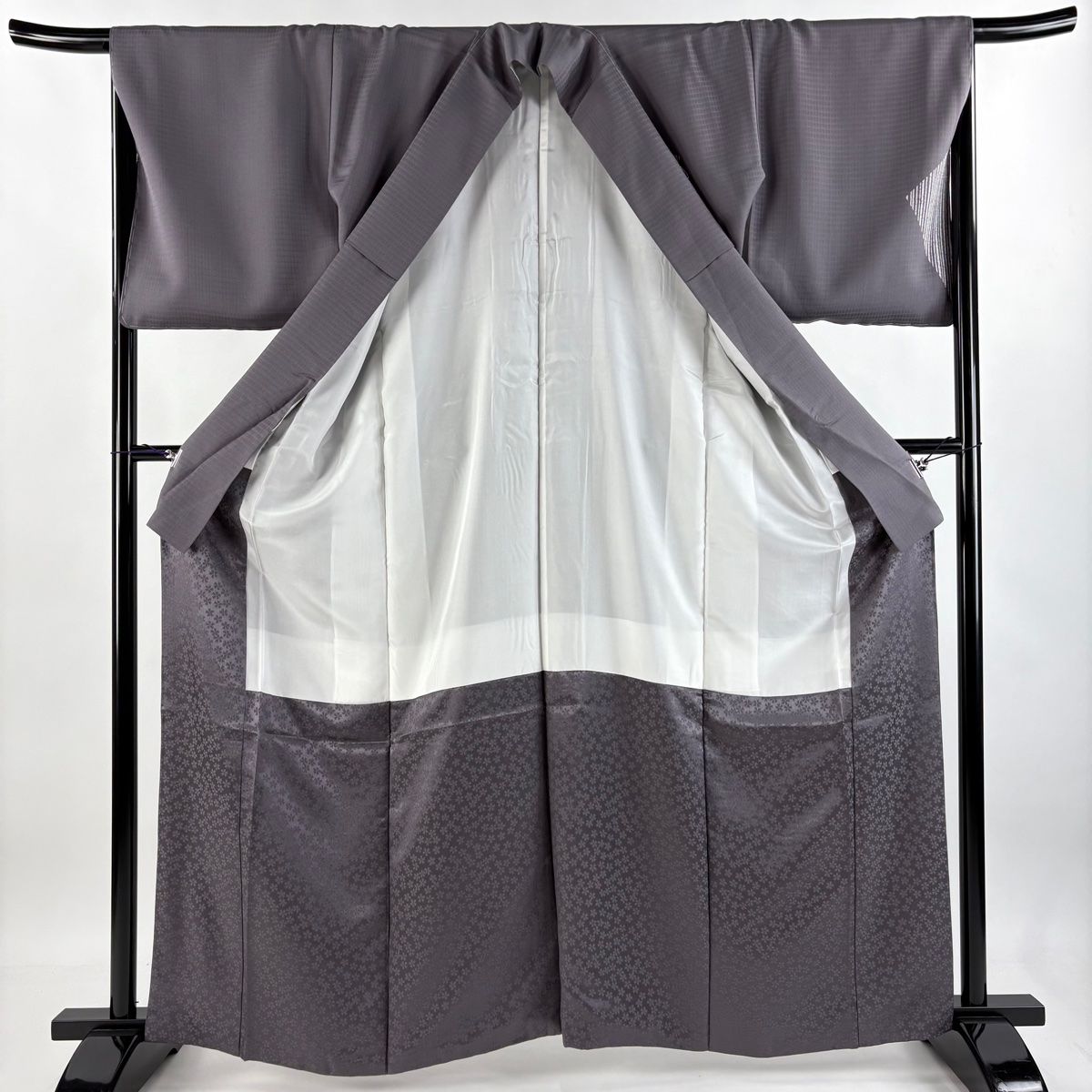 付下げ 身丈163cm 裄丈66.5cm M 袷 葉 縞 金彩 刺繍 灰紫 正絹 秀品の検索結果