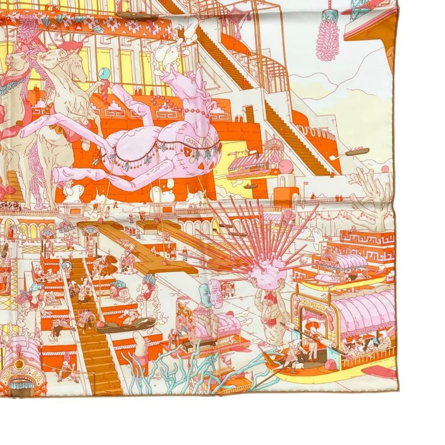 HERMES エルメス カレジェアン Le Monde d Hermes エルメスの世界 244230S 10 スカーフ ストール カレ140 カシシル ベージュ オレンジ