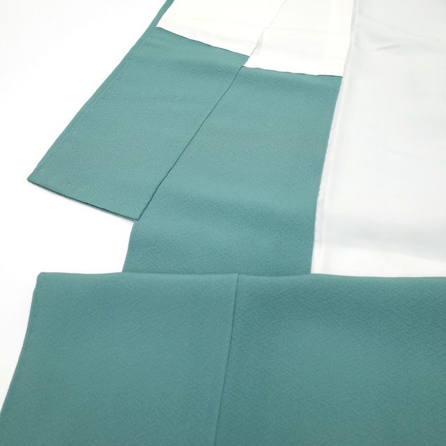 すごい値 色無地 袷 着物 ターコイズ 青緑 無地 一ツ紋 三つ柏 セミフォーマル 品 仕立て上がり 身丈160 裄66 Mサイズ お茶会 販売 正絹 リサイクル 春 秋 冬 すごいね nek00446 GLOBALQUALITYIMPORTS_COM