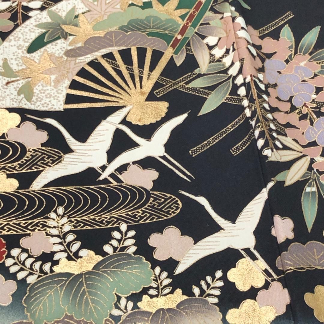 黒留袖 扇子に花模様 飛翔鶴 青海波 組紐 金駒刺繍 K-5332の検索結果