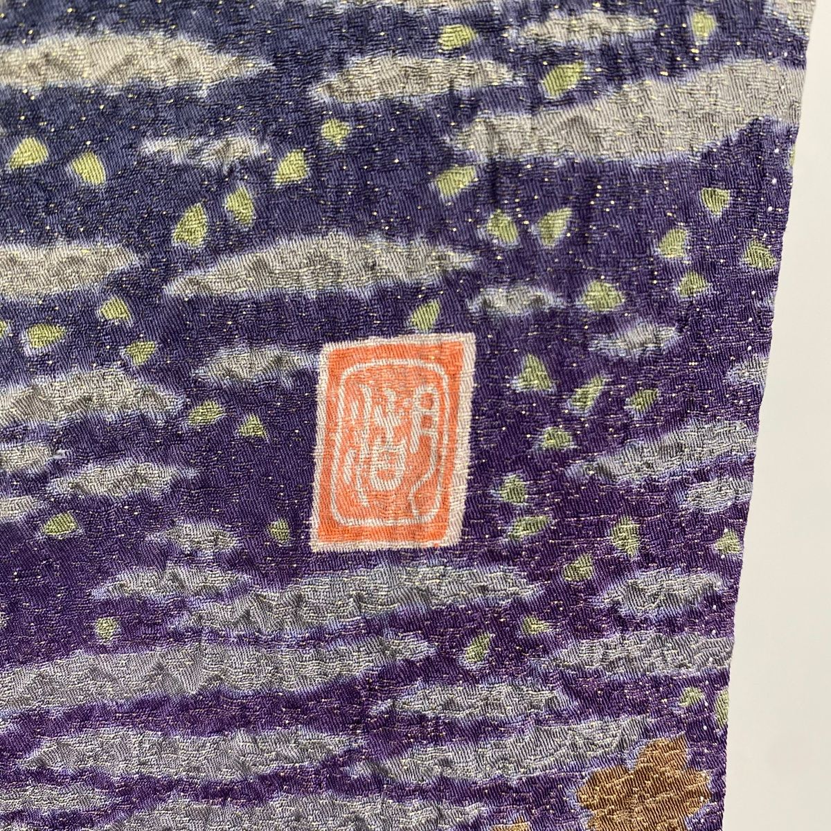 付下げ 身丈162cm 裄丈68cm L 袷 地紋 裾ぼかし 茶紫 正絹