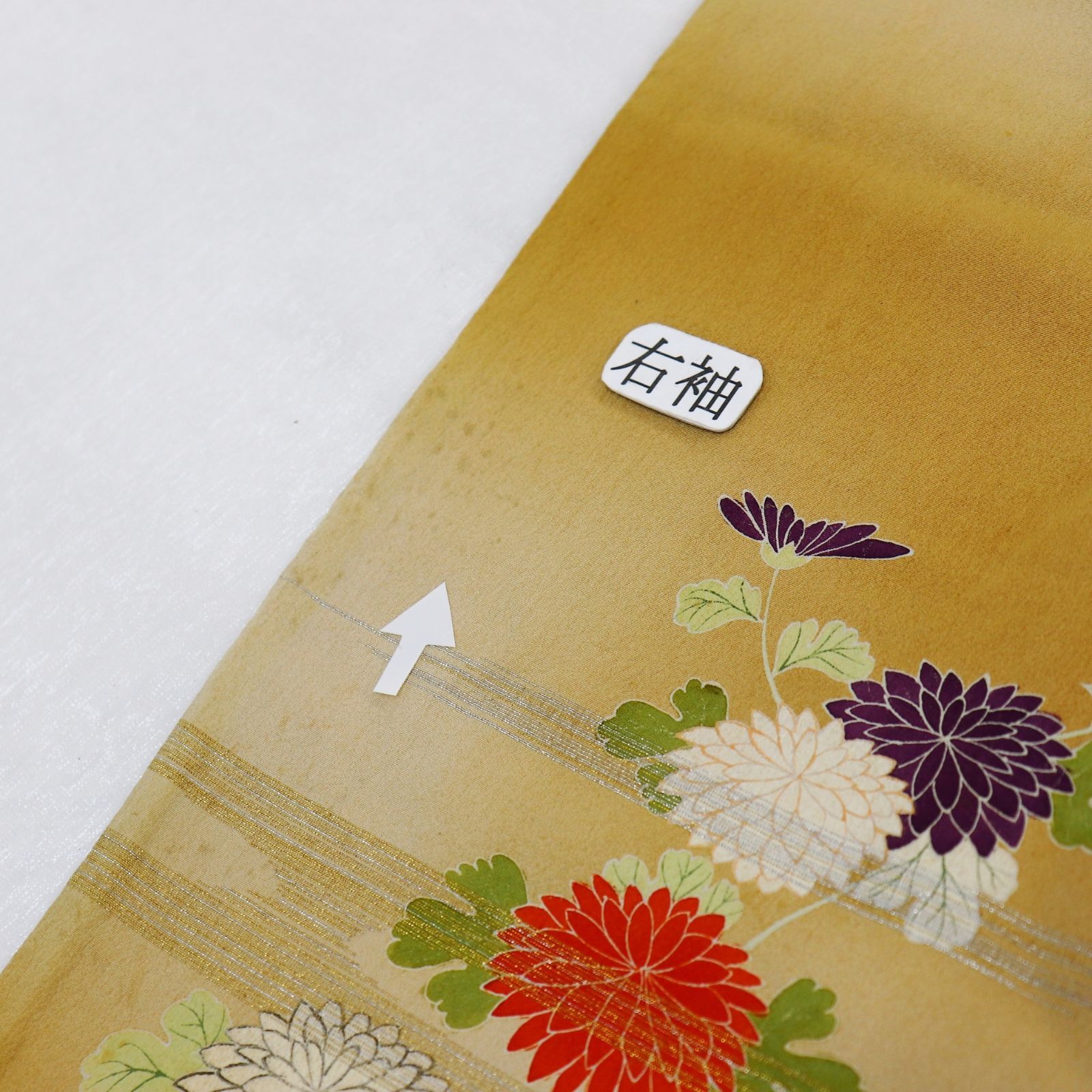 訪問着 身丈161cm 裄丈65.5cm M 袷 落款 牡丹 菊 ぼかし 薄緑 正絹 秀品 一つ紋