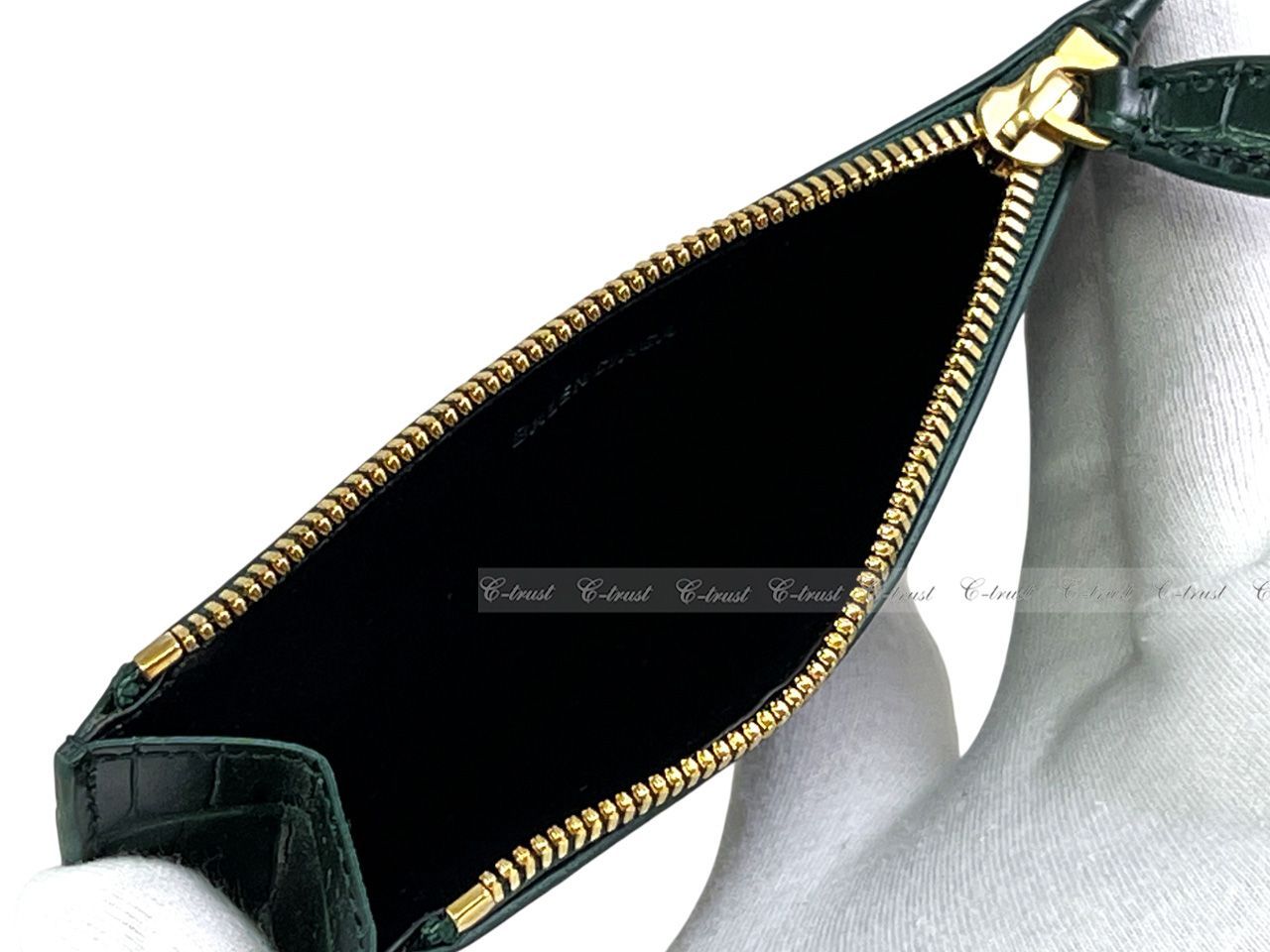 BALENCIAGA バレンシアガ 財布 カード コイン ケース CASH LONG COIN CARD HOLDER クロコ型押し イタリア製 3011 FOREST GREEN L890 GLOBALQUALITYIMPORTS_COM