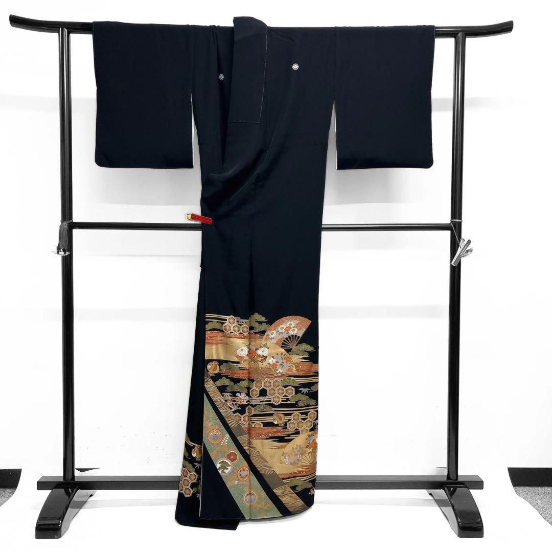 黒留袖 五つ紋 比翼付き 金駒刺繍 金彩 亀甲 菊 宝尽くし 着物 101b dの検索結果