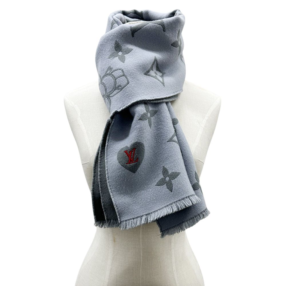 ルイ ヴィトン LOUIS VUITTON マフラー レディース ブランド ストール ウール マフラー ヴィヴィエンヌCVD グレー ブルー かわいい おしゃれ 冬 AW カジュアル GLOBALQUALITYIMPORTS_COM