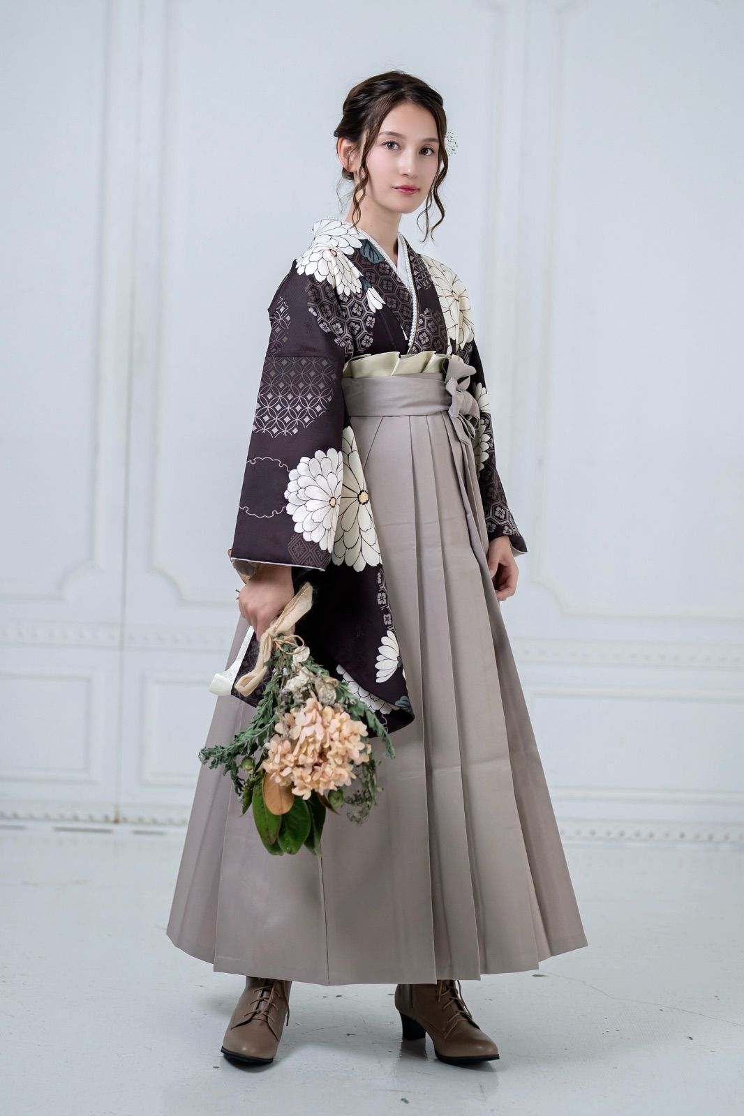 着物ジェンヌ 卒業式袴3点セット 菊 ブラウン 二尺袖 レディース袴 モカ ベージュ 大学生 小学生 袴 袴セット 着物 GLOBALQUALITYIMPORTS_COM