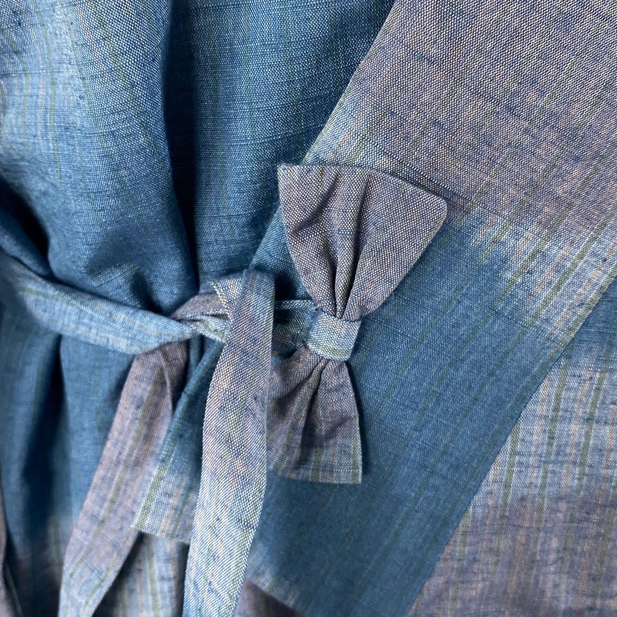 道中着 身丈124.5cm 裄丈66.5cm M 和装コート 着物衿 紬地 縦縞 幾何学 青灰色 正絹 秀品の検索結果