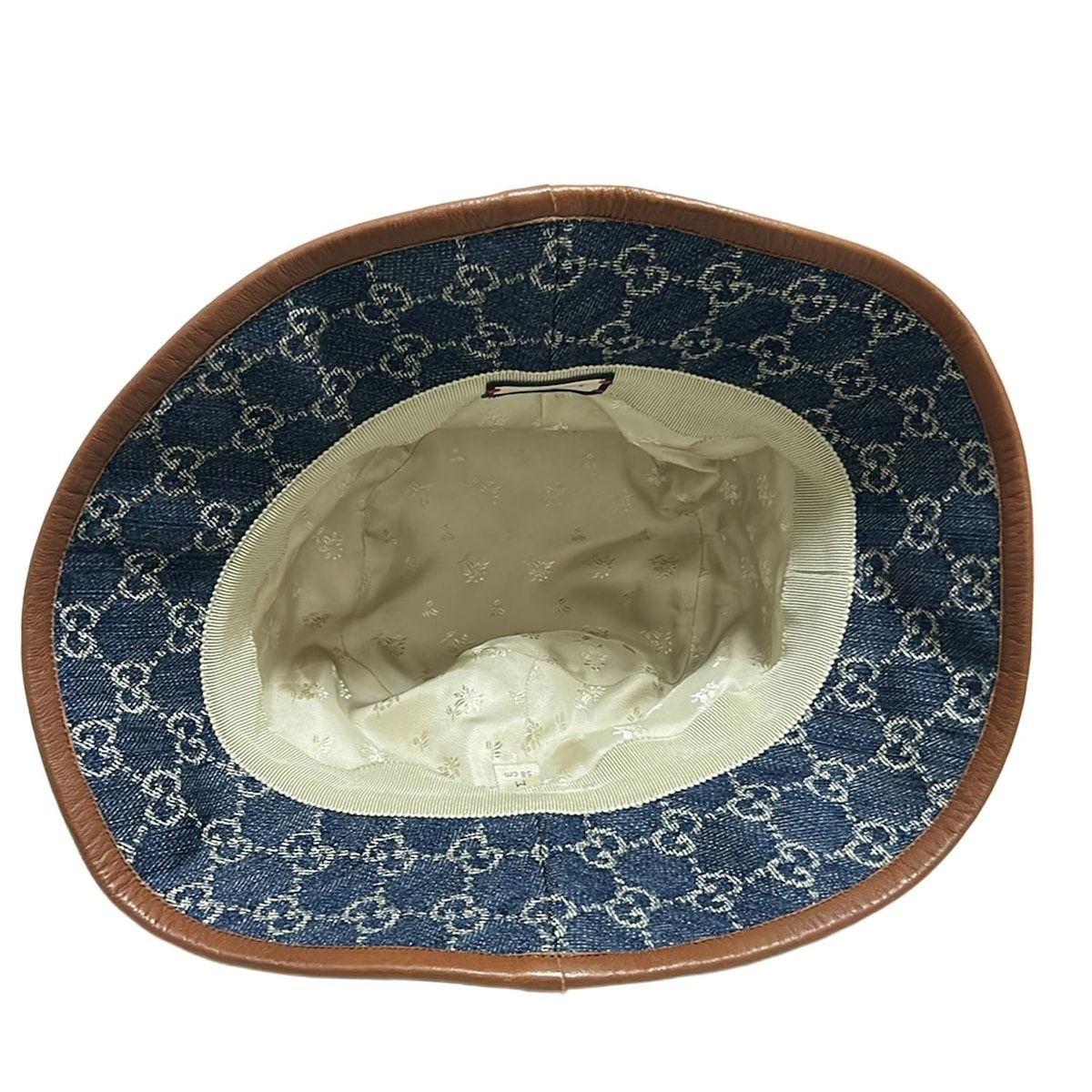 GUCCI グッチ ハット M58.0cm - ネイビー×ベージュ×ダークブラウン GG柄 デニム コットン レザー GLOBALQUALITYIMPORTS_COM