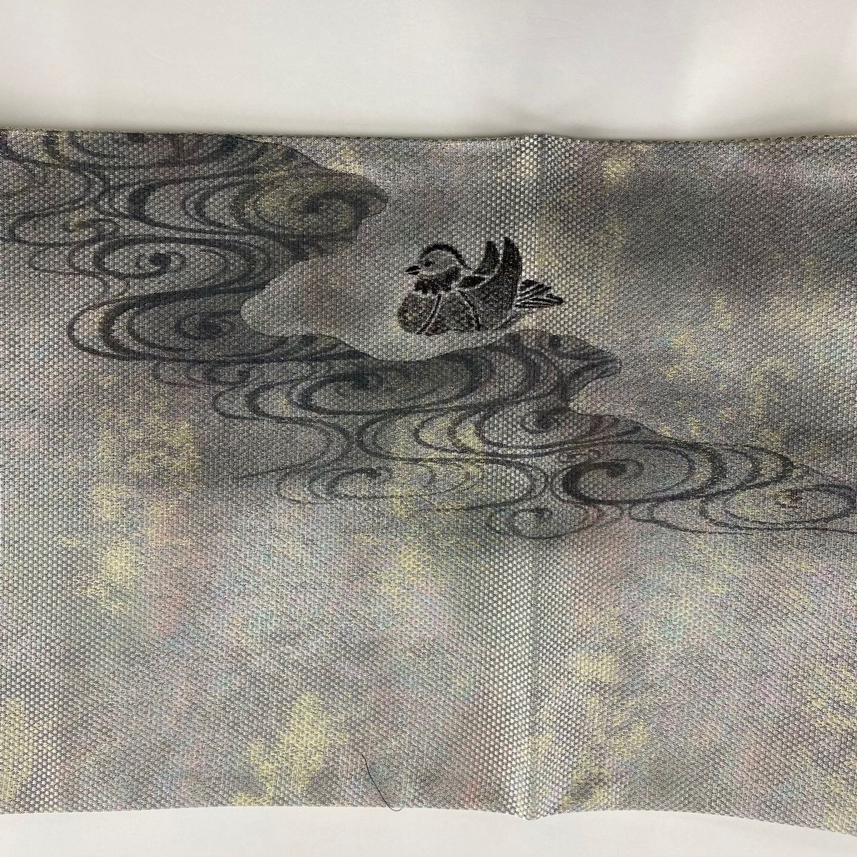 袋帯 落款 鴛鴦 観世水 箔 ぼかし 銀色 お太鼓柄 正絹 GLOBALQUALITYIMPORTS_COM