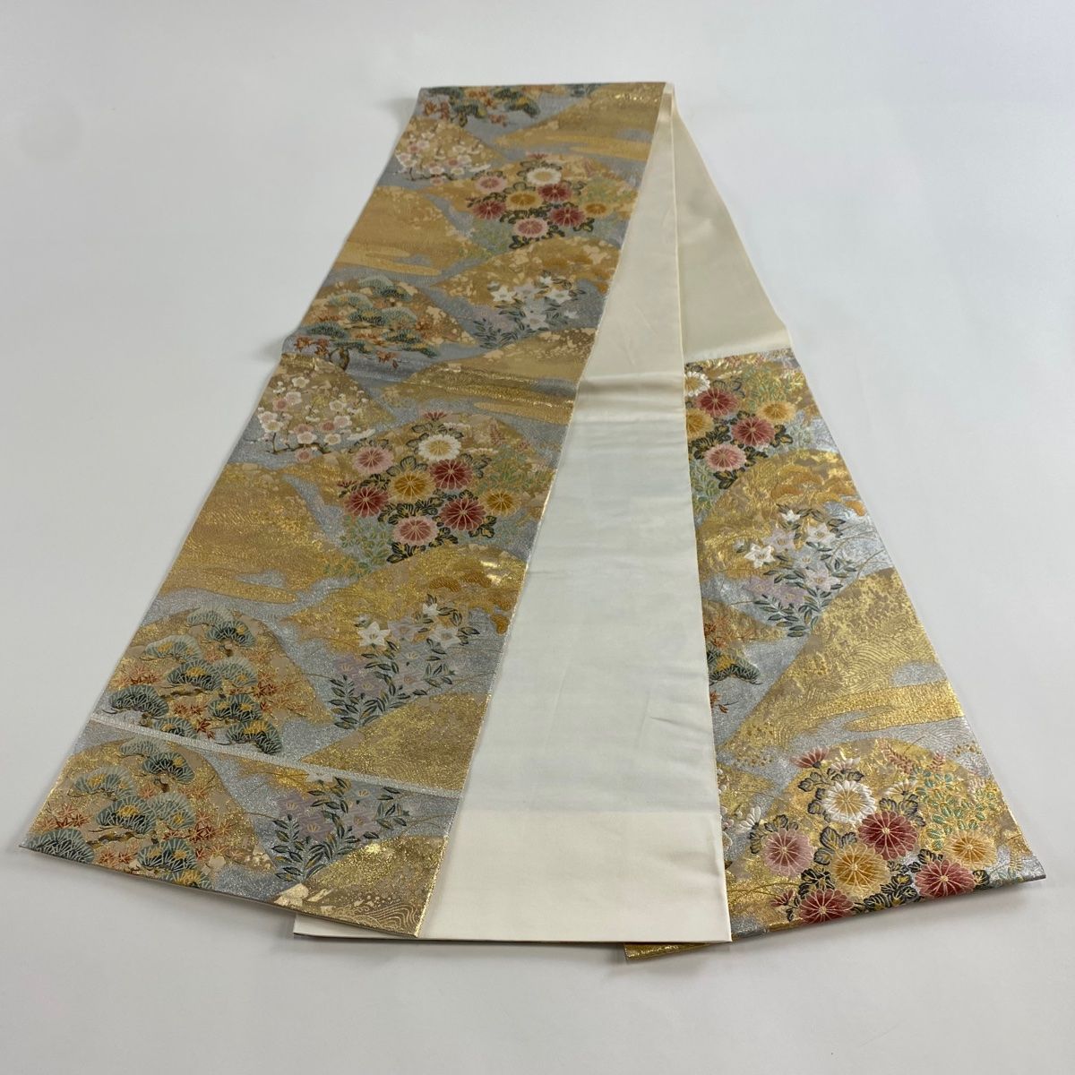 袋帯 秀品 草花 山並み 唐織 箔 金色 六通 正絹 GLOBALQUALITYIMPORTS_COM