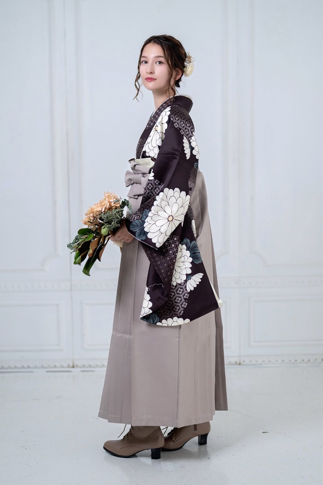 着物ジェンヌ 卒業式袴3点セット 菊 ブラウン 二尺袖 レディース袴 モカ ベージュ 大学生 小学生 袴 袴セット 着物 GLOBALQUALITYIMPORTS_COM