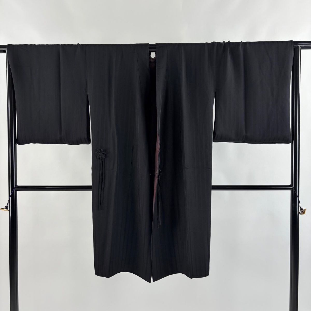 道中着 身丈104cm 裄丈70cm L 斉藤三才 和装コート 着物衿 リバーシブル 落款 斜縞 茶紫 正絹の検索結果