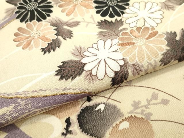 引き摺り 引摺り 引きずり 着物 正絹 縮緬地 流水に藤の図 象牙色 多色 身丈208cm 裄66cm きもの北條 A1288-8