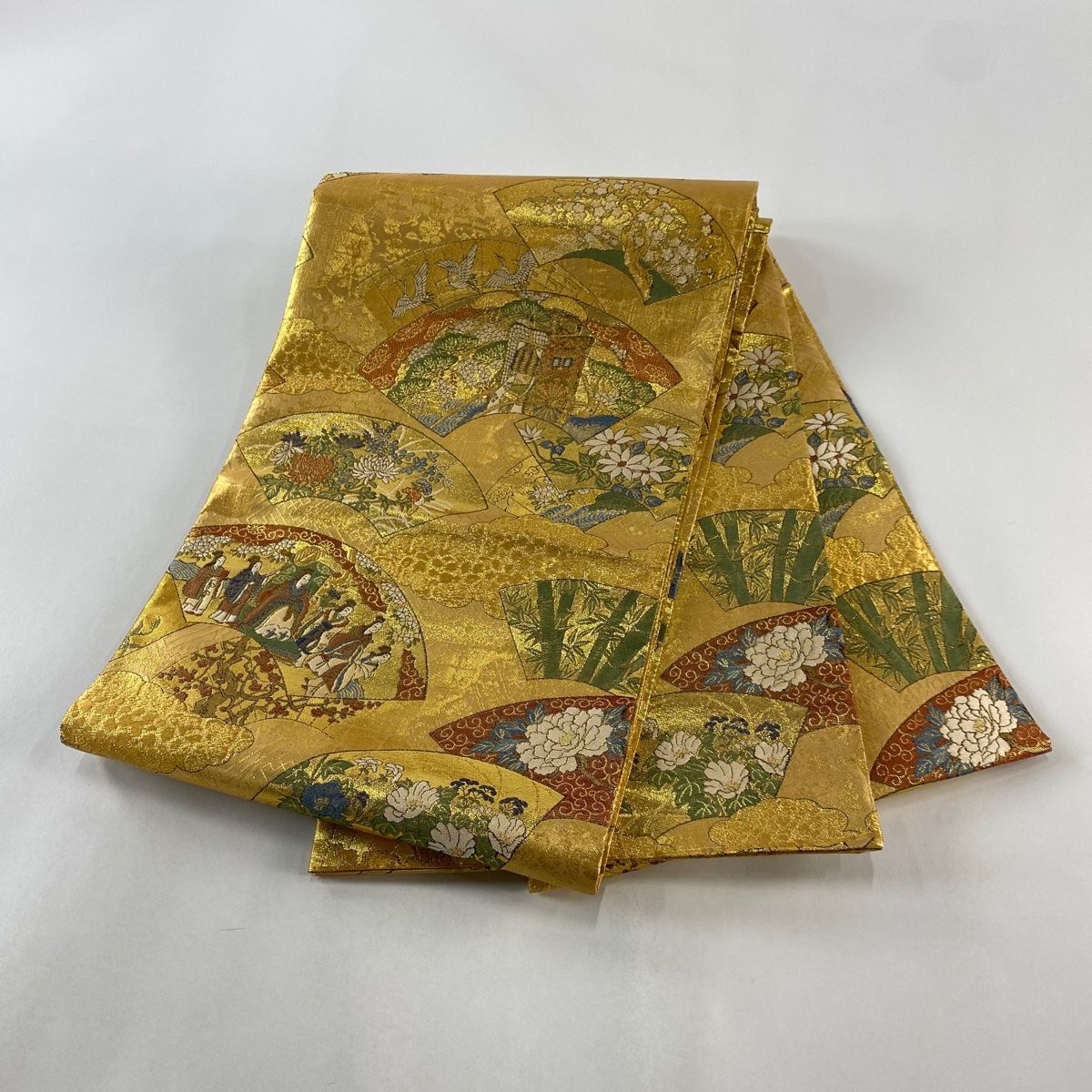 丸帯 秀品 扇面 人物 箔 金色 六通 正絹の検索結果