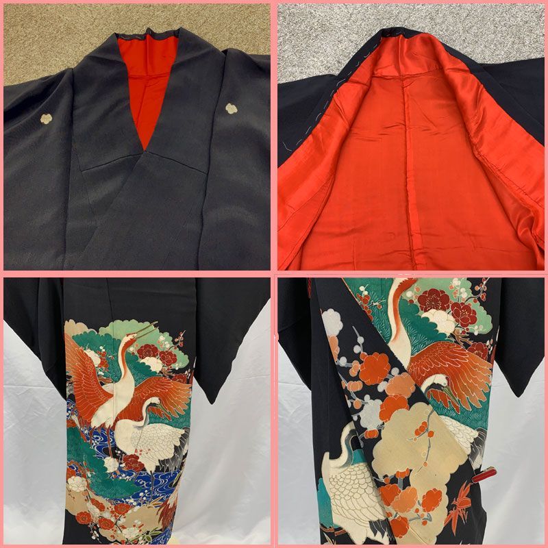 510aa19 アンティーク着物 黒留袖 鶴 松竹梅 昭和レトロ 華やか 牡丹 蘭 蝶 美麗 金彩 銀彩 レトロモダン GLOBALQUALITYIMPORTS_COM