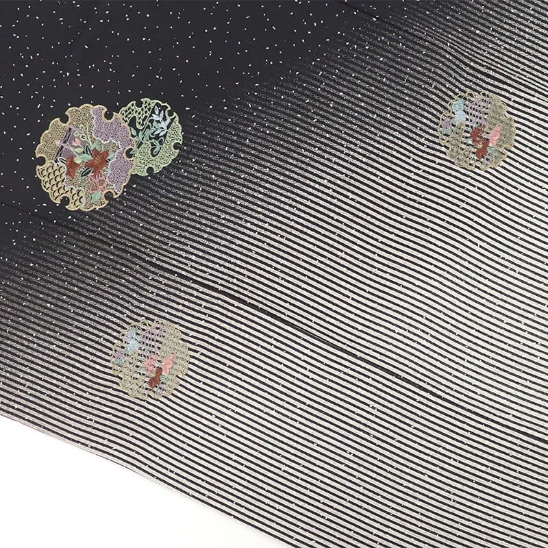 訪問着 袷 レディース 正絹 黒 白ベージュ 雪輪 刺繍 モダン 身丈161cm 裄丈65.5cm パーティ 会食 Mサイズ相当 GLOBALQUALITYIMPORTS_COM