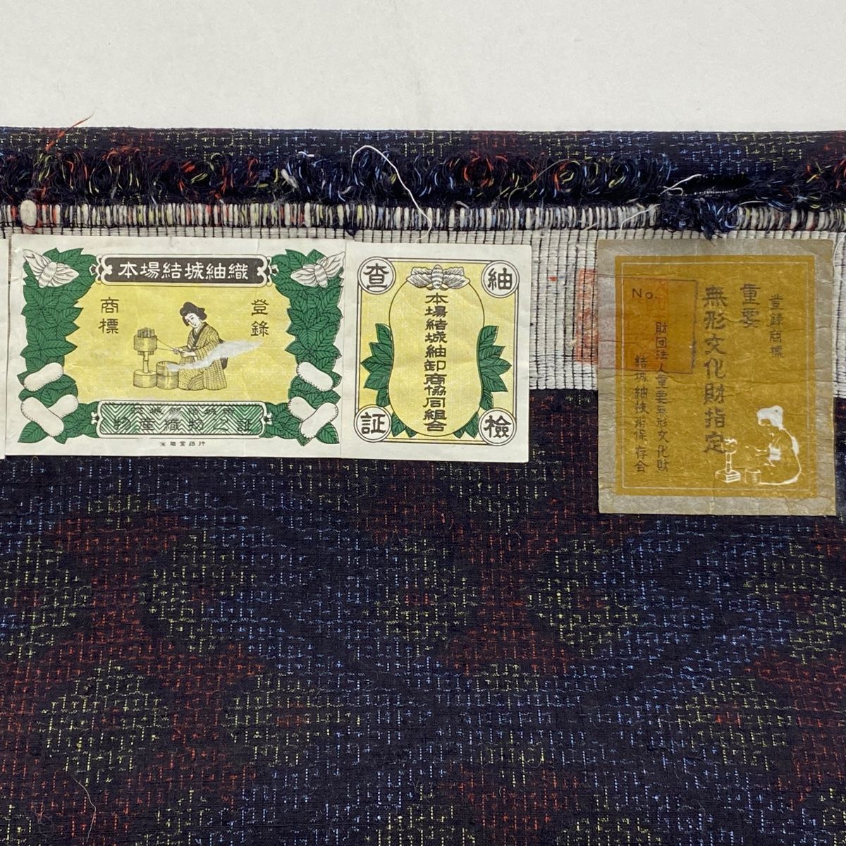 反物 本場結城紬 証紙 松皮菱 幾何学 紺色 正絹 GLOBALQUALITYIMPORTS_COM