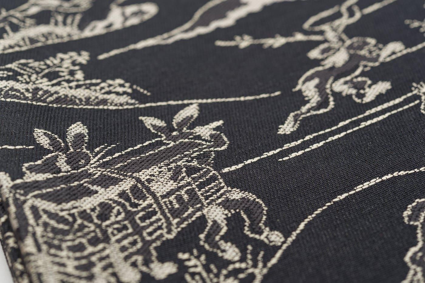 正絹半幅帯 鳥獣戯画 黒×白グレー GLOBALQUALITYIMPORTS_COM
