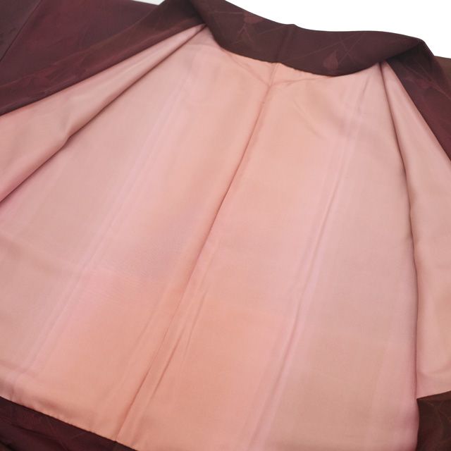 羽織 リサイクル 正絹 袷 ワインレッド ブラウン ぼかし 地紋 草花 カジュアル 春 秋 冬 美しい染め 赤紫 茶色 花 羽織 仕立て上がり 身丈107 裄丈69 Lサイズ ハオリモノ みやがわ sb16437 GLOBALQUALITYIMPORTS_COM