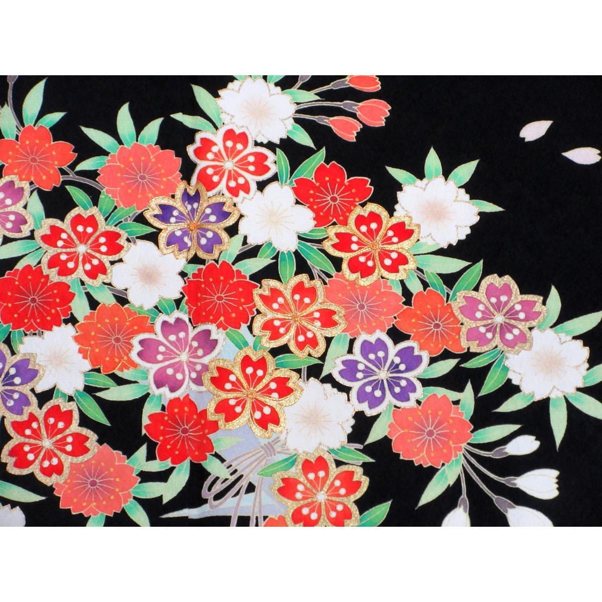 振袖 身丈154cm 裄丈62cm S 袷 桜 霞 金通し 箔 墨色 正絹