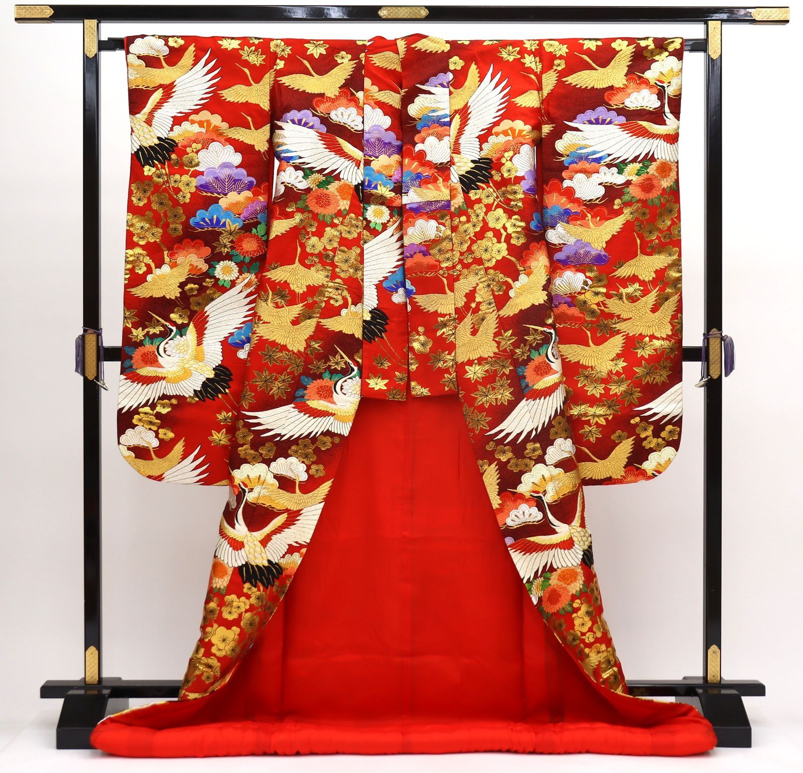色打掛 鮮やか 鶴 梅 紅葉 梅 赤 金b6227 GLOBALQUALITYIMPORTS_COM