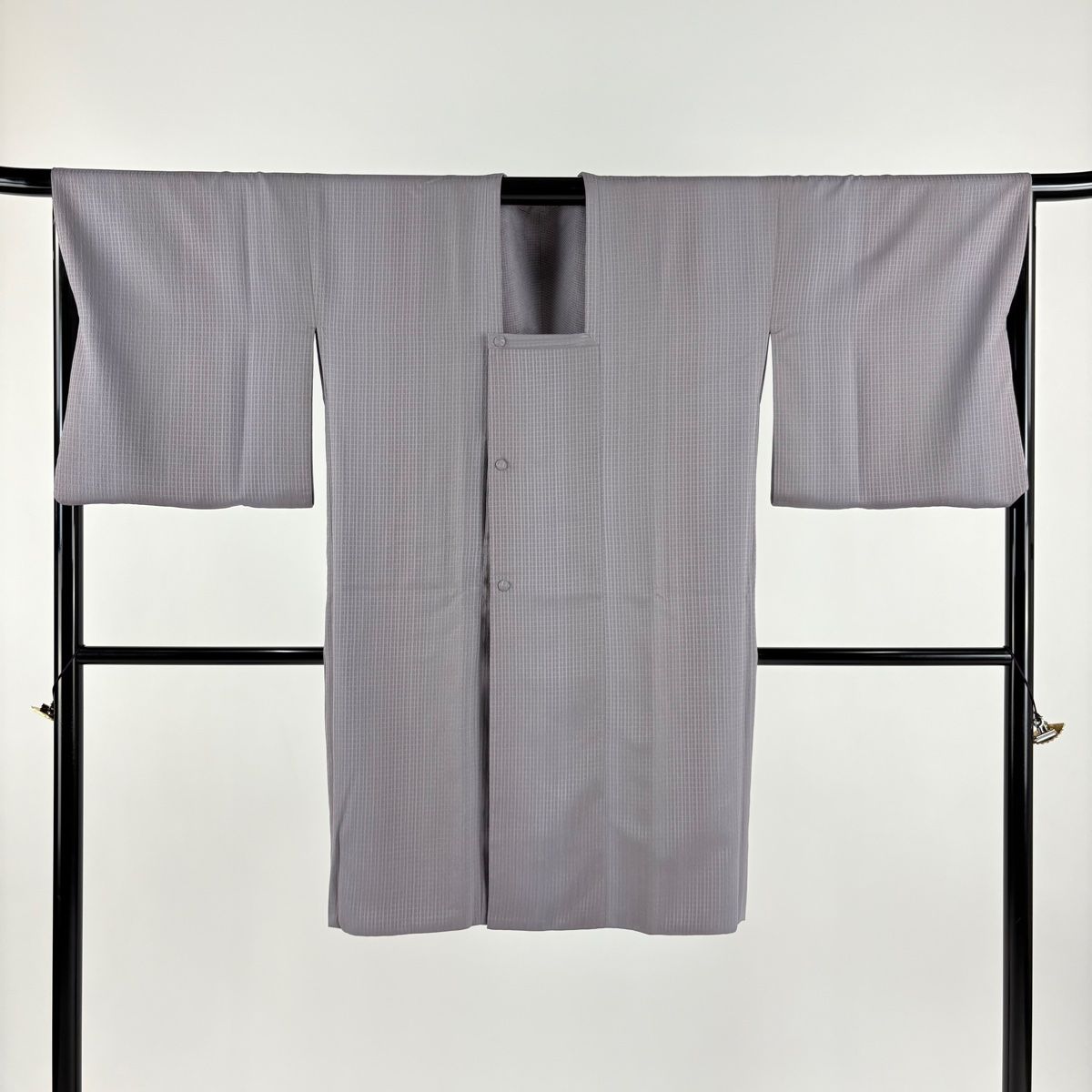 道中着 身丈92cm 裄丈64.5cm M 和装コート 着物衿 格子 華文 灰緑 正絹