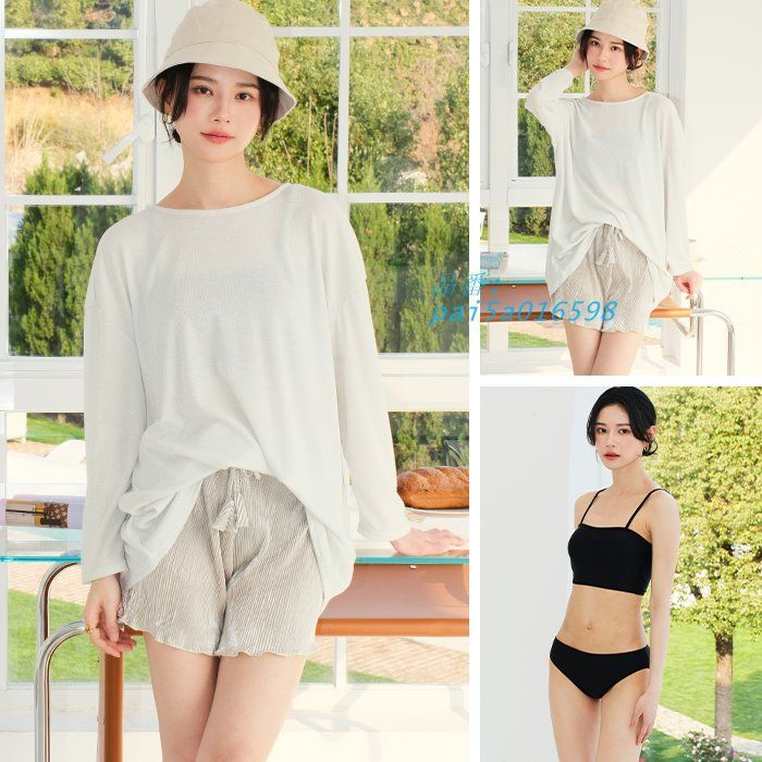 水着 レディース ビキニ 体型カバー 長袖シャツ ショートパンツ パッド付 ノンワイヤー 4点セット バンドゥブラ 50代 20代 30代 ママ水着 40代 pai5a016598 GLOBALQUALITYIMPORTS_COM