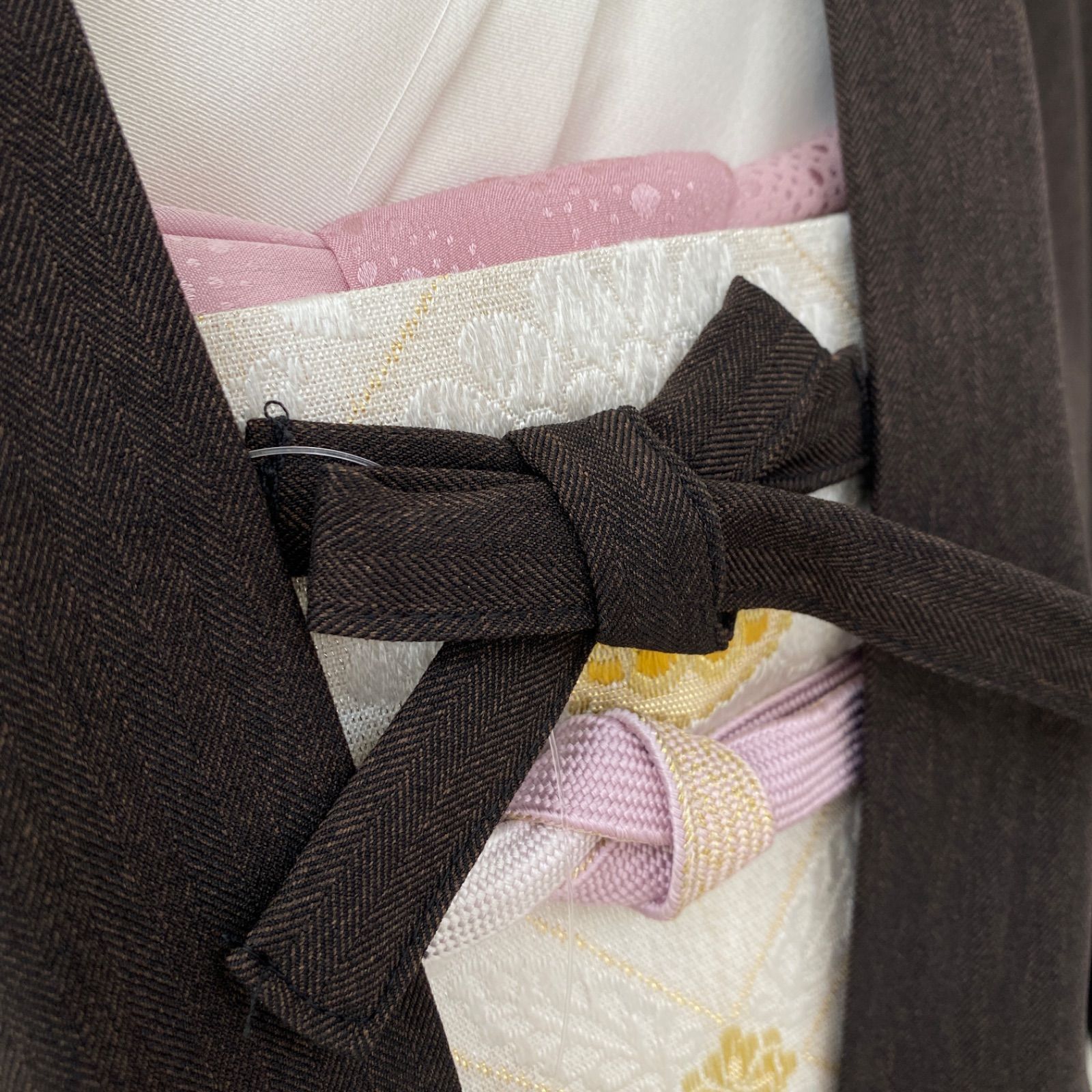 道中着 身丈103cm 裄丈68.5cm L 和装コート 着物衿 やまと 小花 格子 焦茶色 正絹