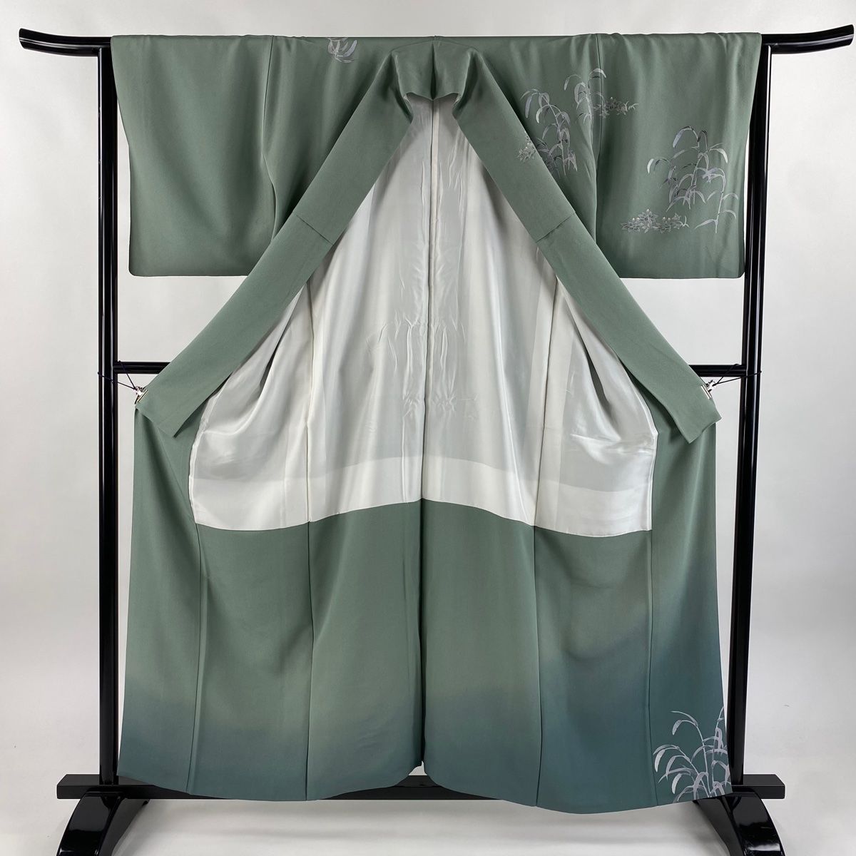 訪問着 身丈157.5cm 裄丈65cm M 袷 関口遼一 落款 遊ぶ童 草花 裾ぼかし 灰緑 正絹 秀品の検索結果