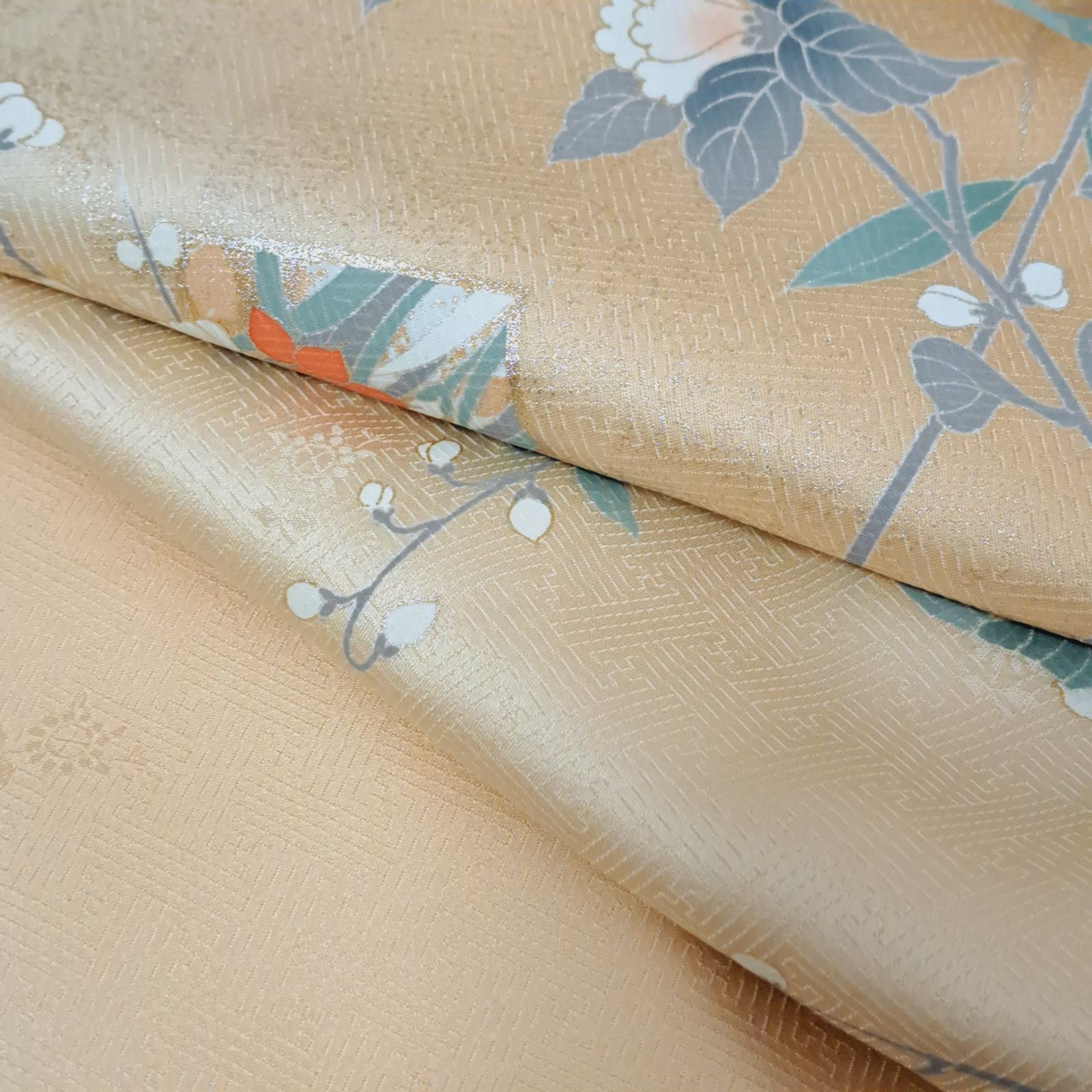 訪問着 裄69 身丈167.5 袖48.5 作家物 正絹 袷 うすだいだい地に四季花柄 め17S07 k2517の検索結果