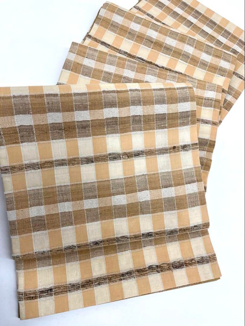 野蚕糸 ムガシルク 全通 洒落袋帯 格子柄 Q1114の検索結果