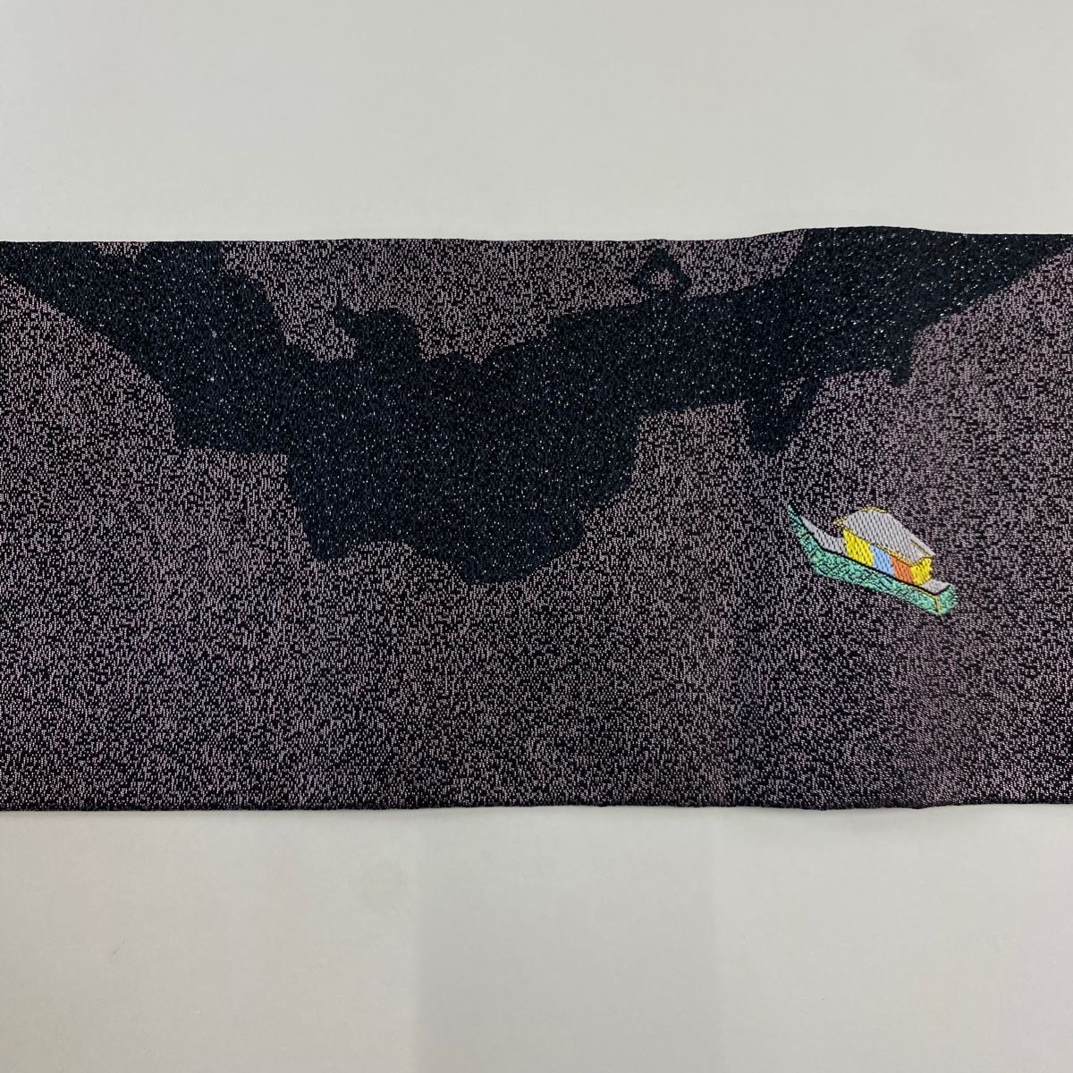 袋名古屋帯 秀品 幾何学模様 黒 正絹