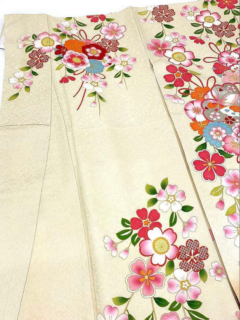 I 着物くつろぎ 振袖 襦袢セット 豪華な花模様 金銀彩 金駒刺繍 丹後ちりめん 牡丹 桜 笹 青海波 七宝 袷 正絹 成人式 着物