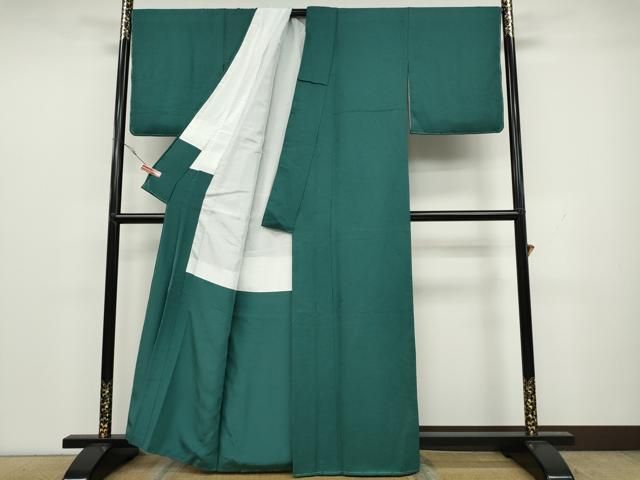 色無地 身丈175cm 裄丈68cm L 袷 落款 緑 正絹 秀品