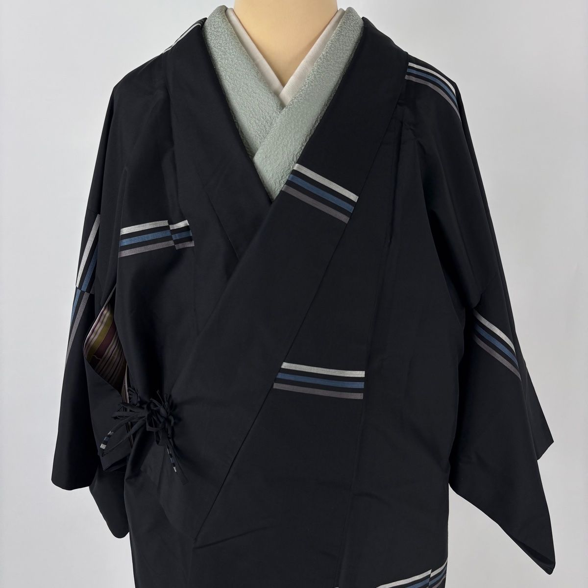 道中着 身丈104cm 裄丈63cm S 和装コート 着物衿 紬地 段縞 黒 正絹の検索結果