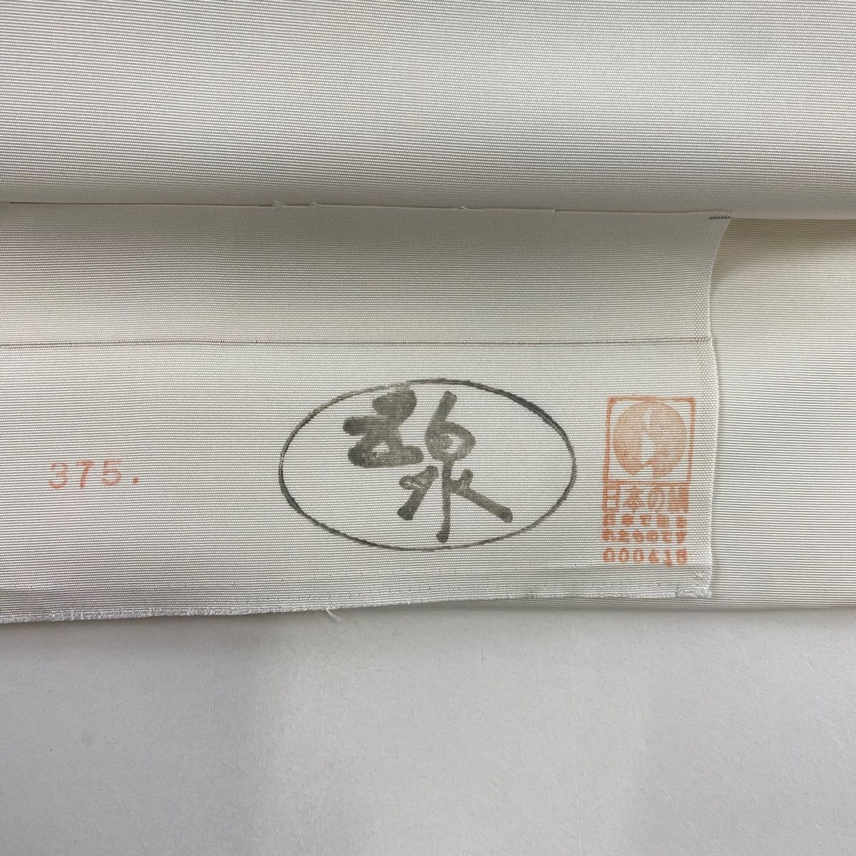 名古屋帯 秀品 落款 人物 樹木 白 正絹 GLOBALQUALITYIMPORTS_COM