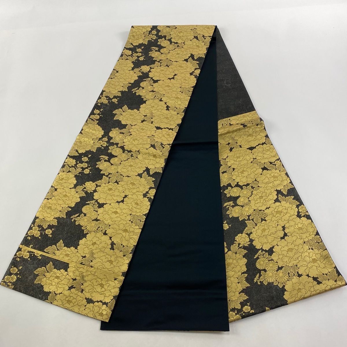袋帯 長嶋成織物 落款 瀞金錦 献上牡丹文 金糸 本金箔 墨色 六通 正絹 GLOBALQUALITYIMPORTS_COM