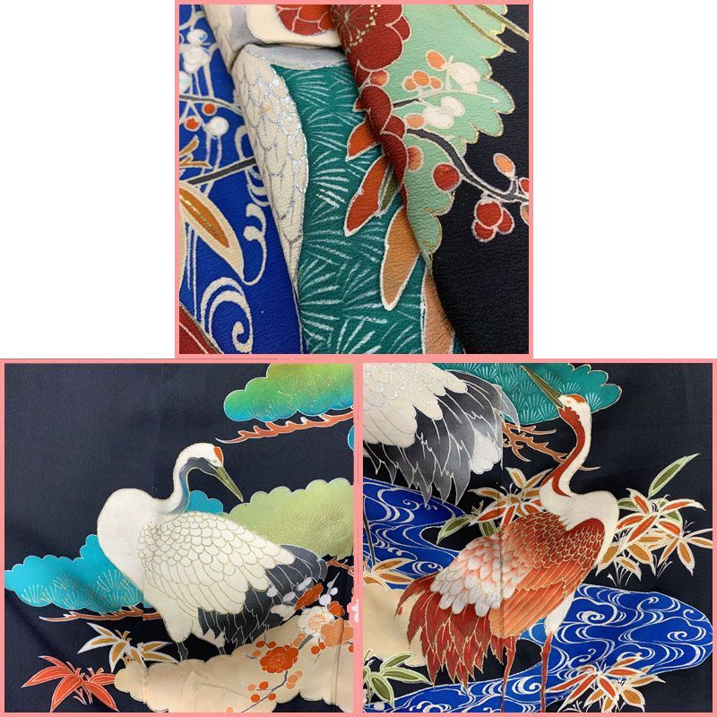 510aa19 アンティーク着物 黒留袖 鶴 松竹梅 昭和レトロ 華やか 牡丹 蘭 蝶 美麗 金彩 銀彩 レトロモダン GLOBALQUALITYIMPORTS_COM