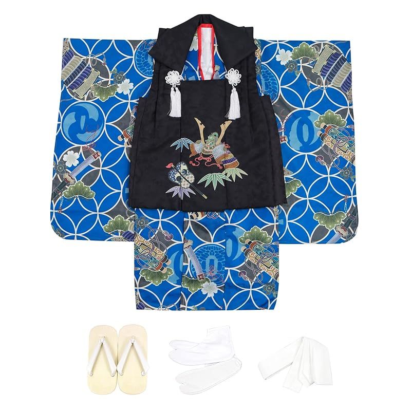 KYOETSU キョウエツ 七五三 3歳 着物 男の子 被布 フルセット しちごさん 16.七宝の青望 90-100cm GLOBALQUALITYIMPORTS_COM