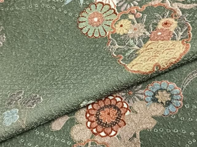 平和屋着物●上質な小紋 器物文 鬼しぼ縮緬 正絹 AABC4952zg
