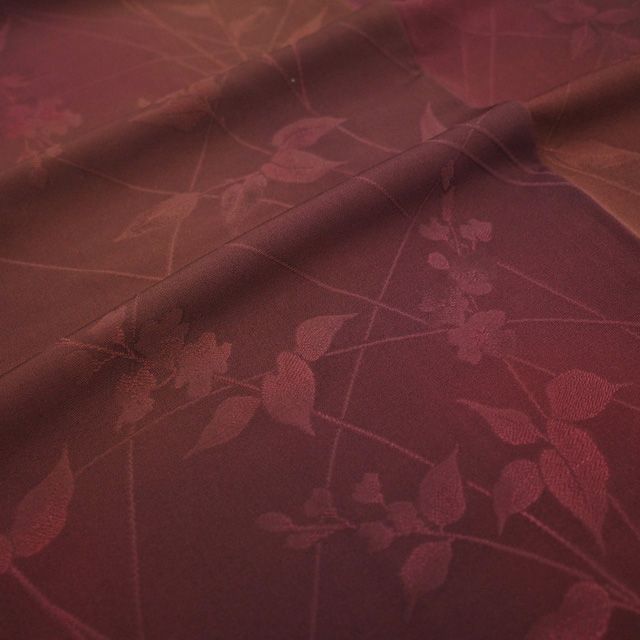 羽織 リサイクル 正絹 袷 ワインレッド ブラウン ぼかし 地紋 草花 カジュアル 春 秋 冬 美しい染め 赤紫 茶色 花 羽織 仕立て上がり 身丈107 裄丈69 Lサイズ ハオリモノ みやがわ sb16437 GLOBALQUALITYIMPORTS_COM