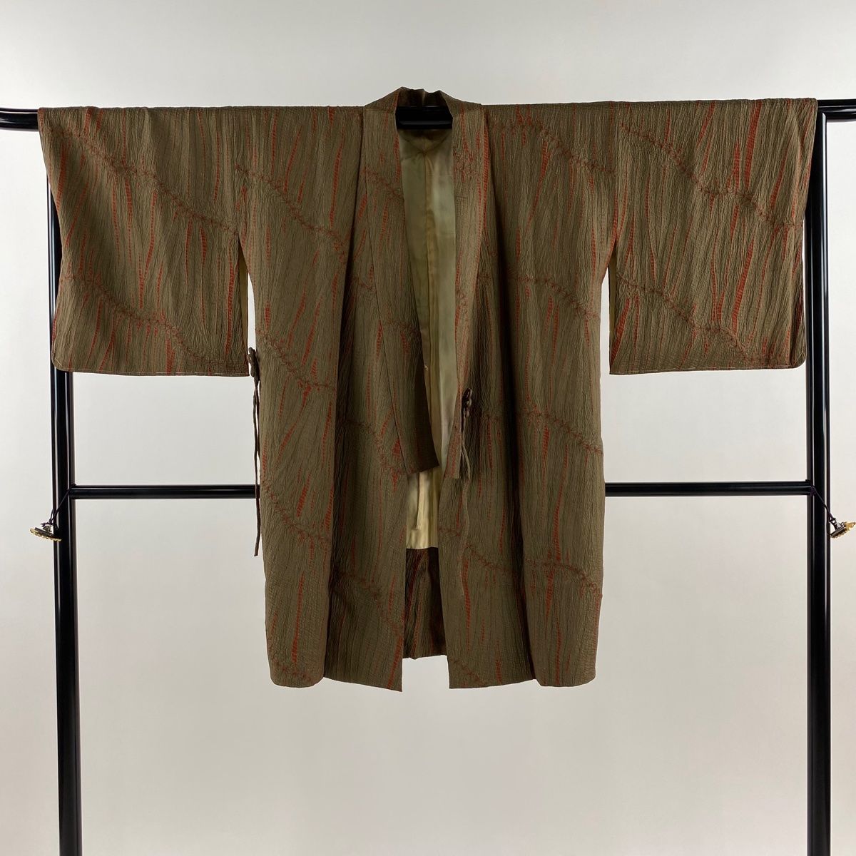 道中着 身丈96.5cm 裄丈67cm M 和装コート 着物衿 幾何学 絞り 茶色 正絹 秀品の検索結果