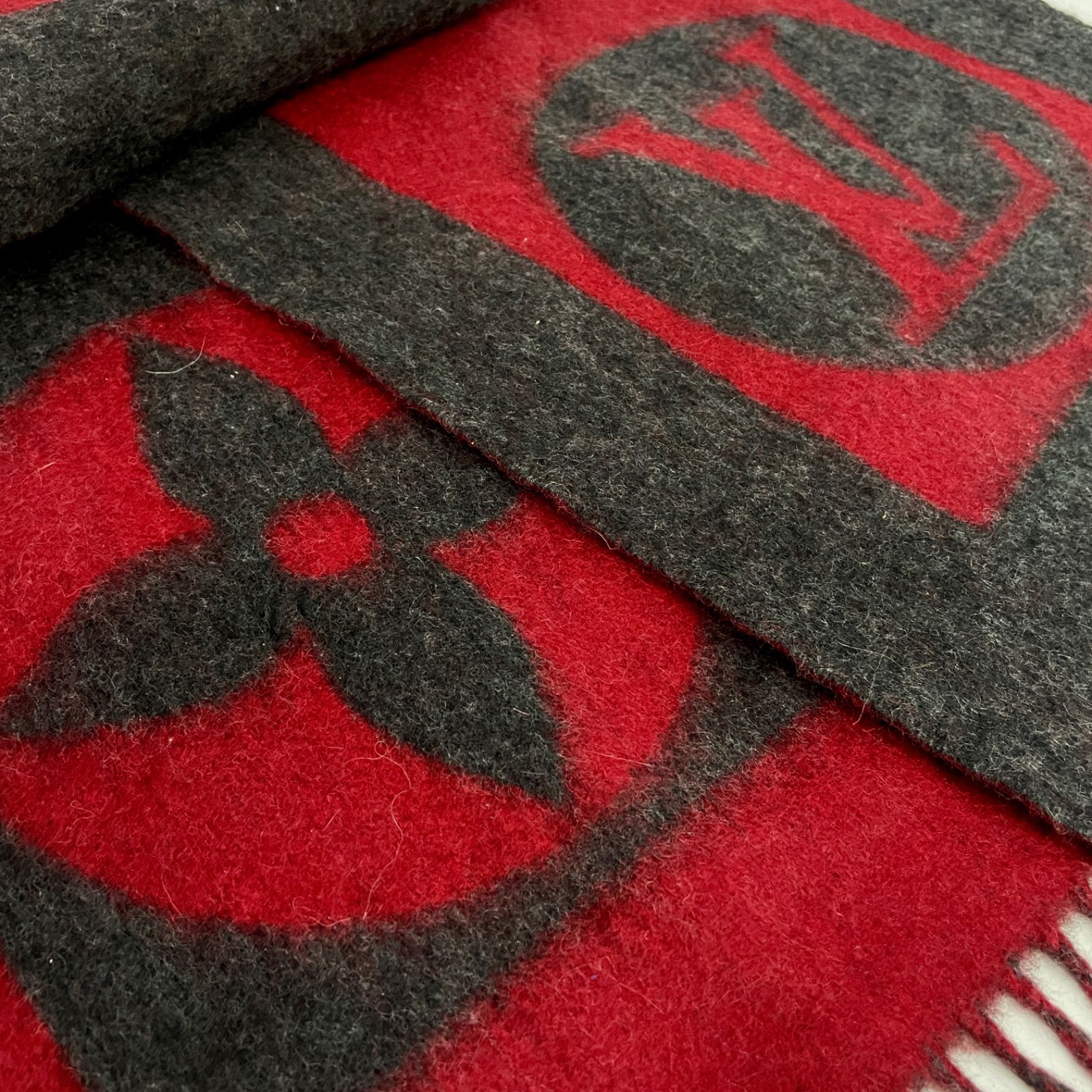 レベル ルイヴィトン エシャルプ カーディフ マフラー ウール アンゴラ 秋冬 男女兼用 ユニセックス レッド×グレー 8211 GLOBALQUALITYIMPORTS_COM