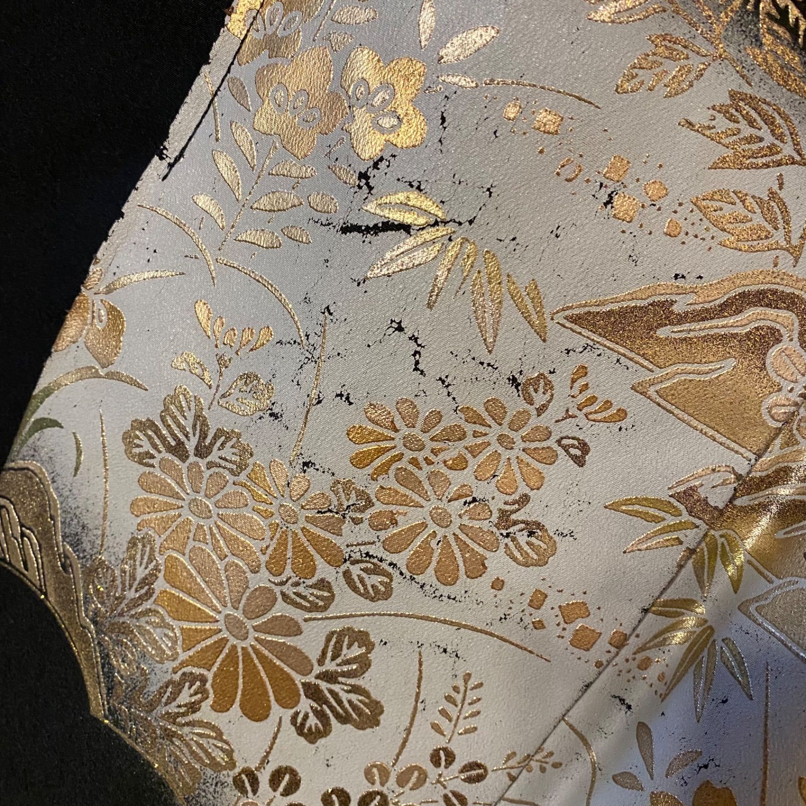 510aa19 アンティーク着物 黒留袖 鶴 松竹梅 昭和レトロ 華やか 牡丹 蘭 蝶 美麗 金彩 銀彩 レトロモダン