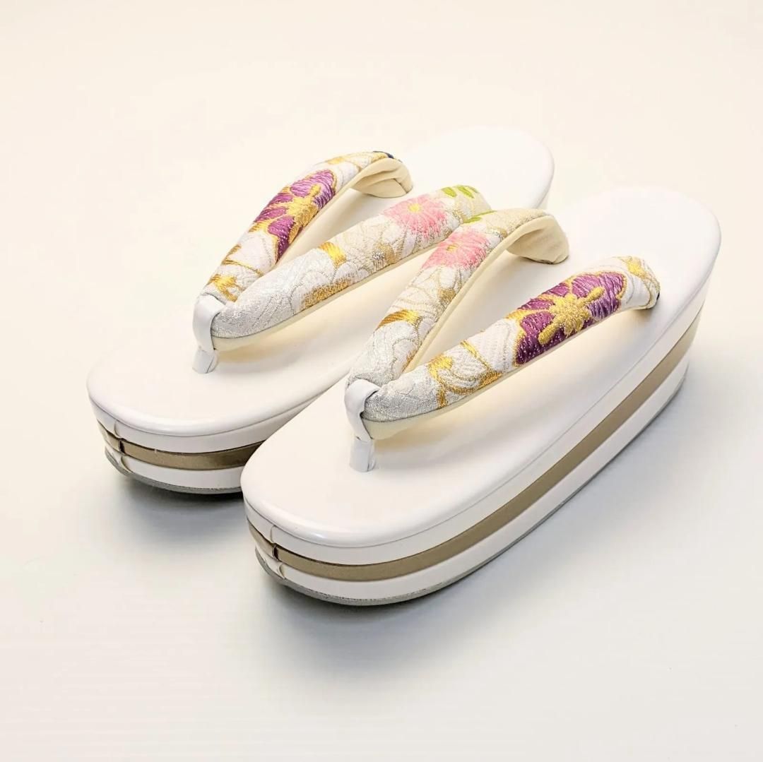 草履バッグセット 振袖用帯地 白×金 三枚芯 S M L LLサイズ w43-3の検索結果