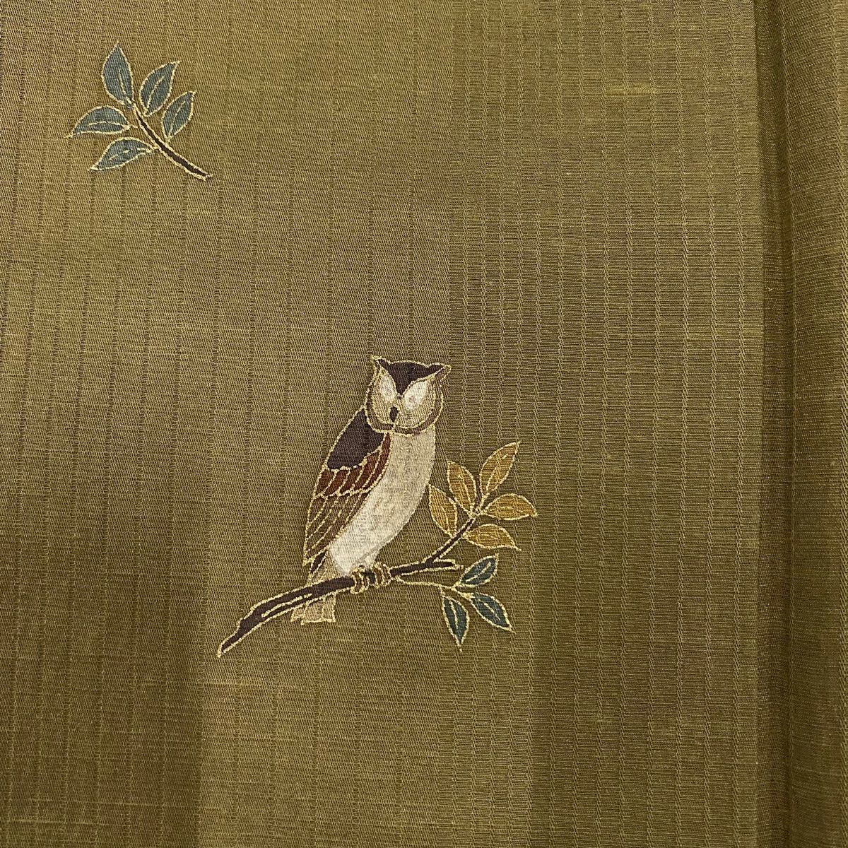 小紋 身丈157.5cm 裄丈65.5cm M 袷 ふくろう 金彩 鶯色 正絹の検索結果